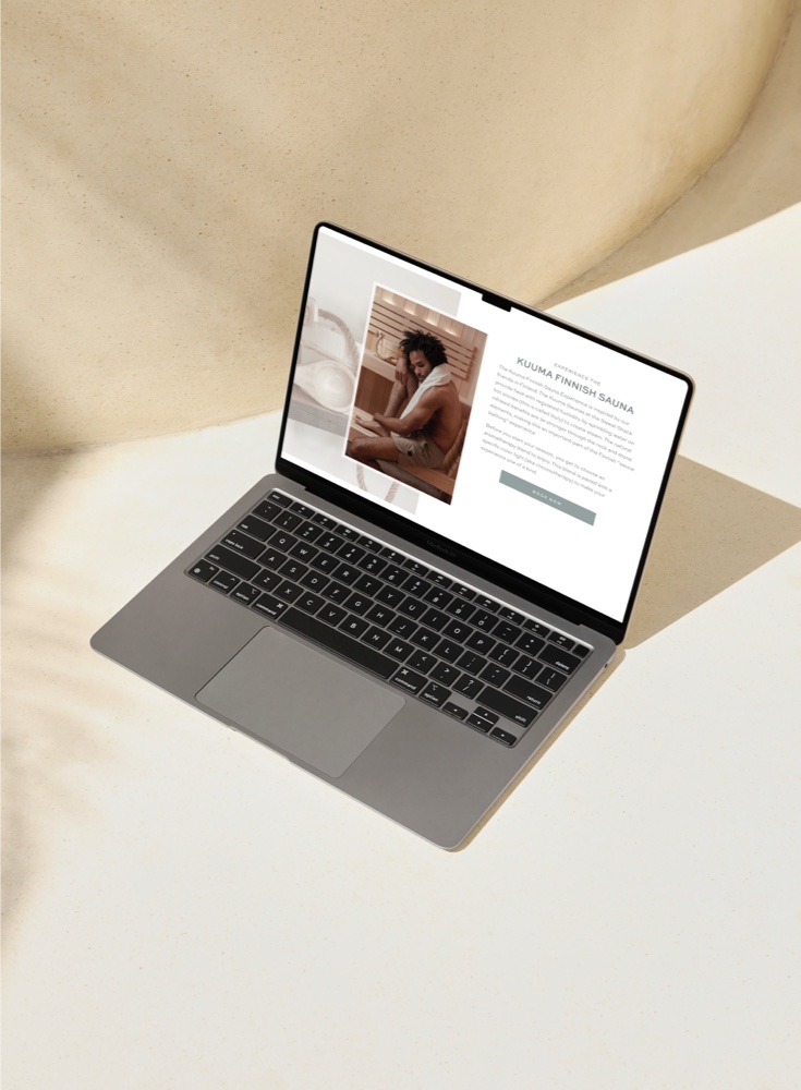 The custom brand and website design reflect The Sweat Shack’s calming and elevated atmosphere—inviting, minimal, and effortlessly clean. Through thoughtful art direction and styling, the branding photoshoot brings the essence of the experience to life, capturing moments of warmth, purity, and quiet rejuvenation across every visual touchpoint.